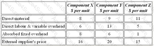 A company requires 2,000 units each of components X, Y and Z during the next period. All three components are made on the same machine which has a capacity of 26,000 hours for next period. No inventories are held.
