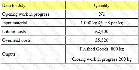 The following data refers to a manufacturing process for the month of July: