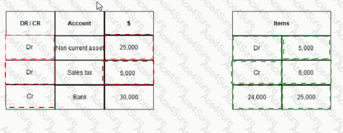 CDE, an entity registered for sales tax, purchases a piece of equipment for cash on 31 December 20X6 for $30,000 including sales tax. The sales tax rate is 20%. What is the journal entry required to record this transaction in the nominal ledger?