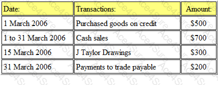 John Taylor commenced business on 1 March 2006, paying $1,000 cash into a business bank account. During the next month the following transactions took place.
