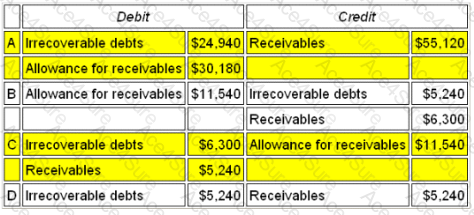 Soffit plc is calculating its irrecoverable debt charge and allowance for receivables for inclusion in its year-end accounts. Based on an aged receivables schedule, it is estimated that an allowance for receivables of $125,820 is required.