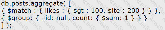 Fetches the posts with likes between 100 and 200 and sets their _id as null