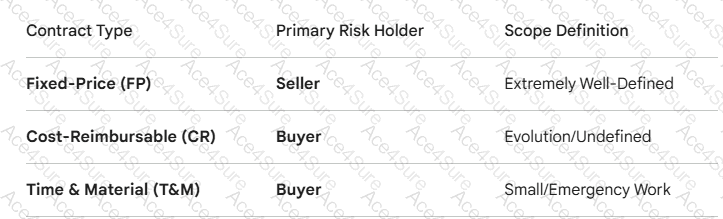 According to the PMBOKĀ® Guide, specifically within the Plan Procurement Management process, selecting the correct contract type is essential for managing risk between the buyer and the seller. Fixed-price contracts (also known as Lump Sum contracts) place the maximum risk and legal obligation on the seller.