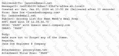 Protected company data was recently exfiltrated. The SOC did not find any indication of a network or outside physical intrusion, and the DLP systems reported no unusual activity. The incident response team determined a text file was encrypted and reviews the following log excerpt: