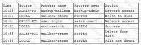 While investigating an email server that crashed, an analyst reviews the following log files: