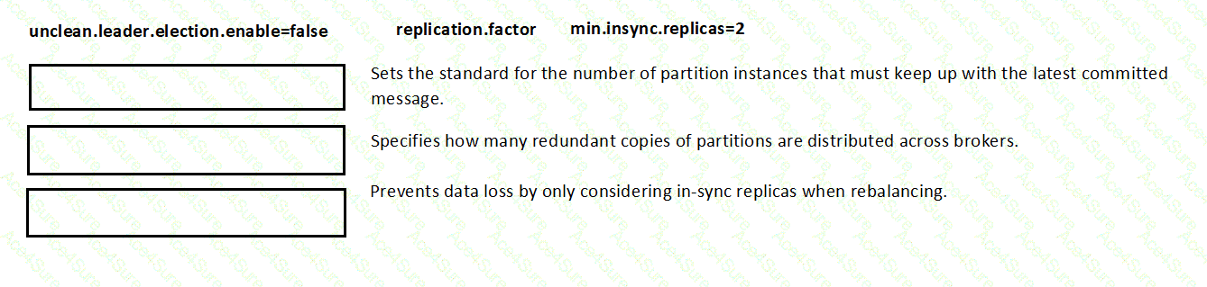 (You are given settings like unclean.leader.election.enable=false, replication.factor, min.insync.replicas=2)