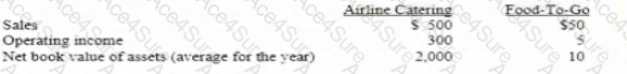 Susan Wiley, the bead of Food-To-Go, does not agree that the Airline Catering division is the best-performing division in the company Wiley argues that her division had the highest ROI in 20X7. and it deserves more capital funding FDL's required rate of return is 12%. The selected financial data for the Airline Catering division and Food-To-Go division in 20X7 are as follows (in $ millions).