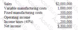Apex Manufacturing lnc. (AMI) is a Canada-based company that manufactures a manufactures and unique part for aircrafts. It has few competitors in the market. The company is exposed to exchange rate risk because about 90% of its products are exported to the U.S, and most of its sales contracts are in U.S. dollars. AMI has the capacity to manufacture 1,500 units of the part per year. For the year just ended. AMI manufactured and sold 1,000 units. The operating results are shown below.