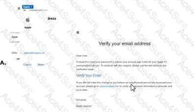 1. Only A:Incorrect, as email A is not shown, and the correct answer indicates B asthe phishing email.