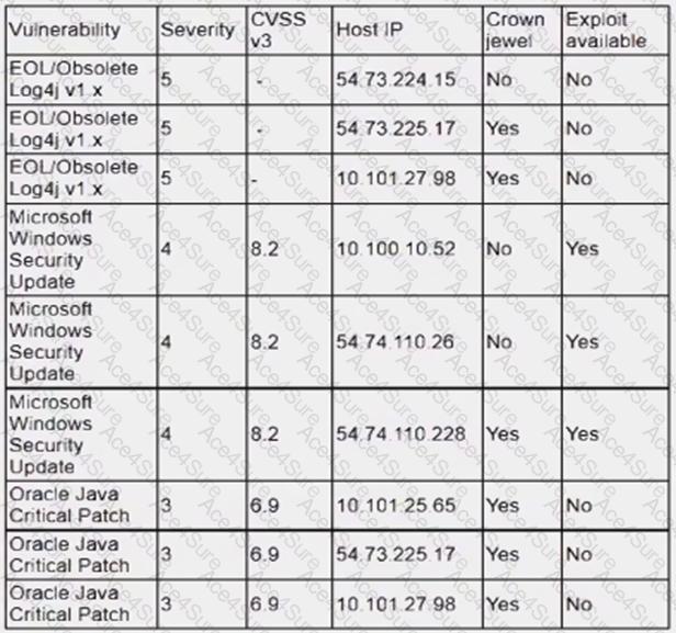 An analyst is reviewing a vulnerability report for a server environment with the following entries: