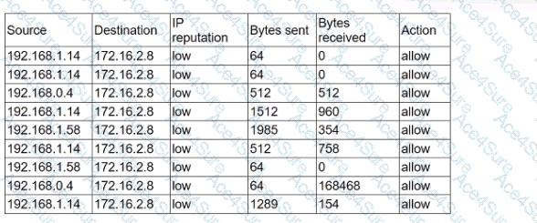 An analyst receives alerts that state the following traffic was identified on the perimeter network firewall: