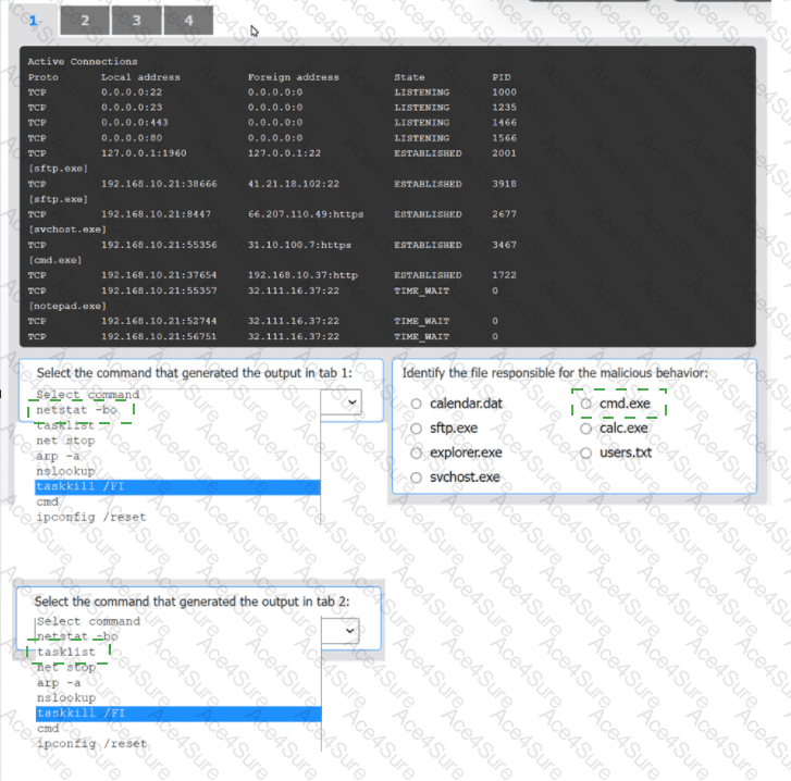 Select the command that generated the output in tabs 1 and 2.