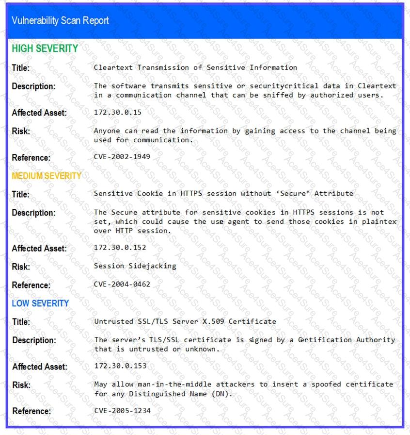 The developers recently deployed new code to three web servers. A daffy automated external device scan report shows server vulnerabilities that are failure items according to PCI DSS.