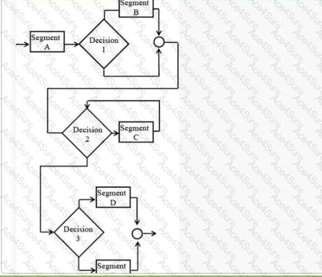Since each decision has two branches and they are independent of each other, the number of distinct paths that need to be tested is: 2(Decision1)+2(Decision2)+2(Decision3)=6 branches2 (Decision 1) + 2 (Decision 2) + 2 (Decision 3) = 6 \text{ branches}2(Decision1)+2(Decision2)+2(Decision3)=6 branches