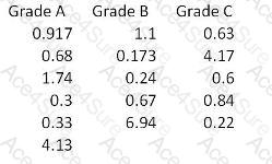A Paired T-test would be applicable for comparing Grade B and Grade A since they follow each other in the data set