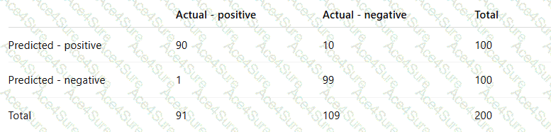 A motorcycle engine repair shop owner wants to detect a leaking exhaust valve and fix it before it fails and causes catastrophic damage to the engine. The shop developed and trained a predictive model with historical data files from known healthy engines and ones which experienced a catastrophic failure due to exhaust valve failure. The shop evaluated 200 engines using this model and then disassembled the engines to assess the true state of the valves, recording the results in the confusion matrix below.