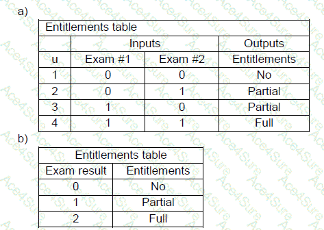 Option B shows a mapping from total score to entitlements but doesn't model how the total is derived from the two exams.