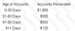A company has average monthly sales of $2,700, of which 5 percent is on a cash basis, with the remaining sold on open account. The company's accounts receivable aging schedule at the end of March is as follows: