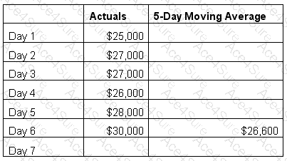 Using the data in the table, what is the exponential smoothing forecast for Day 7 (rounded to the nearest whole $)?