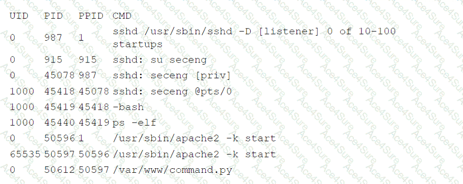The company's IDS has reported an anomaly. The cloud engineer remotely accesses the cloud instance, runs a command, and receives the following information: