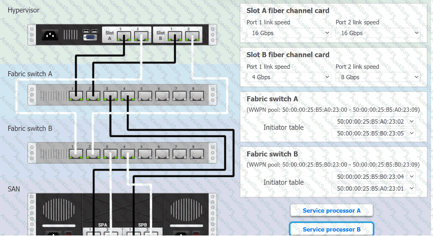 . The SAN array must be fully configured for redundant fabric paths. . IOPS should not fall below 14000