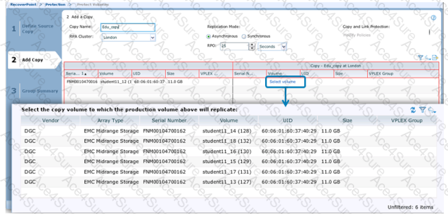 copy volume. Based on the exhibit, what determines the volume size displayed by the wizard as a choice of copy volumes?