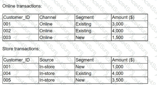 A marketing analytics team received customer transaction data from two different sources. The data is complete and accurate; however, the field names appear to be inconsistent. Given the following tables: