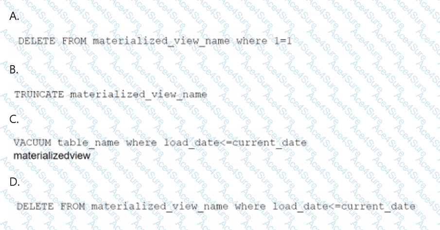 A data engineer maintains a materialized view that is based on an Amazon Redshift database. The view has a column named load_date that stores the date when each row was loaded.