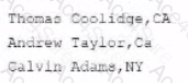 You have a tMap component configured with a single input row1and three outputs: CA, NY, Rejects. The input row1 consists of two columns. Name and State, containing the following data: