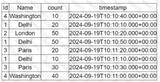 (Referring to the table image: it has columnsId,Name,count, andtimestamp.)