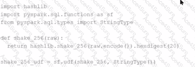 The developer wants to replace this existing UDF with a Pandas UDF to improve performance. The developer changes the definition ofshake_256_udfto this:CopyEdit