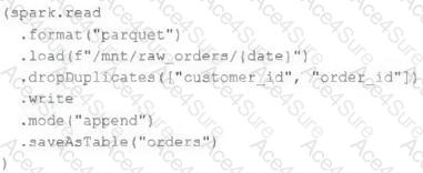 An upstream source writes Parquet data as hourly batches to directories named with the current date. A nightly batch job runs the following code to ingest all data from the previous day as indicated by the date variable: