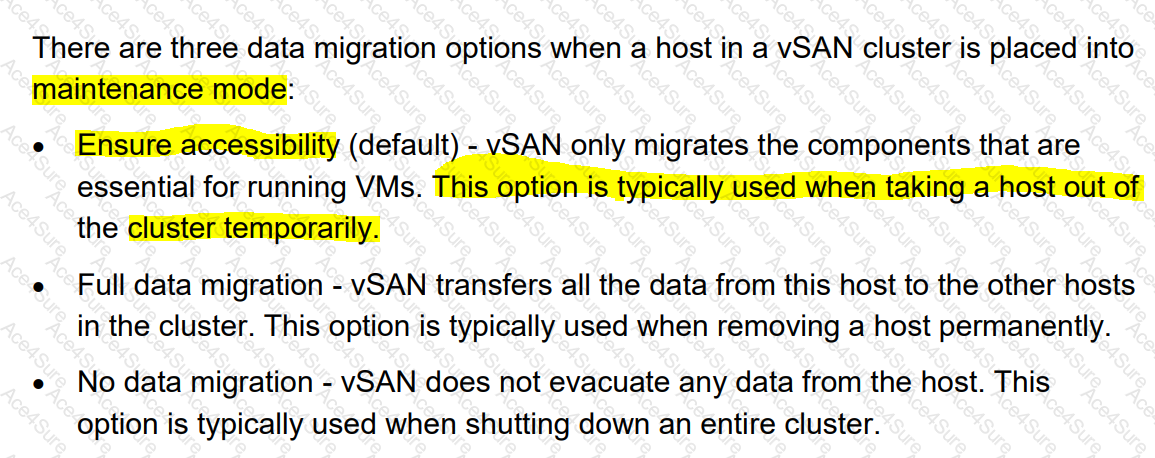 An implementation engineer places a VxRail node into maintenance mode using the Ensure accessibility setting What is the engineer likely planning to do?