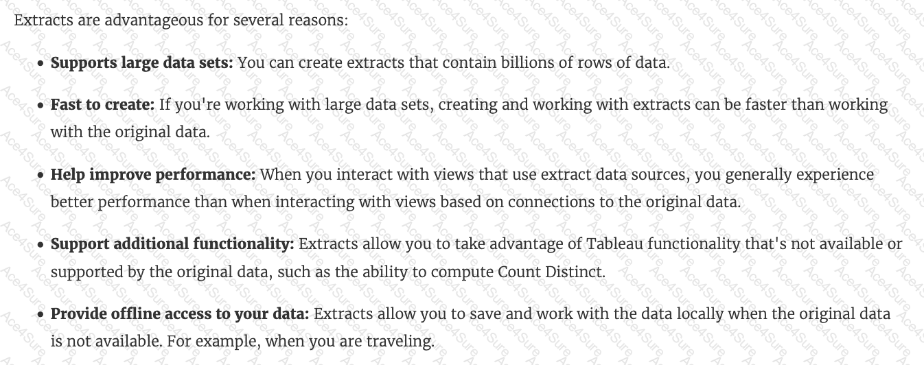Which of the following are valid reasons to use a Tableau Data Extract (.tde) over Live Connections?