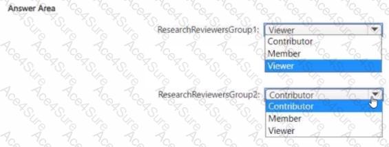 Which workspace rote assignments should you recommend for ResearchReviewersGroupl and ResearchReviewersGroupZ? To answer, select the appropriate options in the answer area.