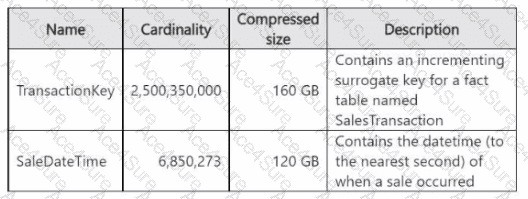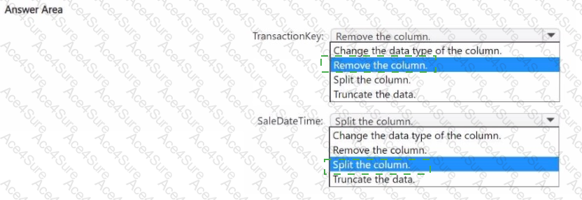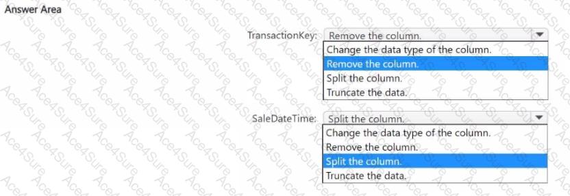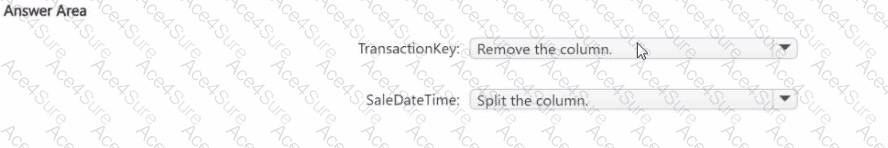 [References:, Microsoft Fabric optimization guidance – reduce cardinality, Best practices for datetime optimization in semantic models, , ✅ Answer Selection:, TransactionKey → Remove the column, SaleDateTime → Split the column, , ]