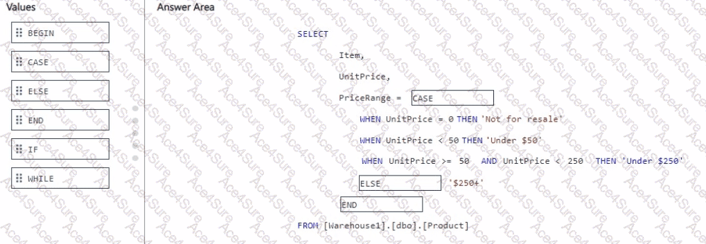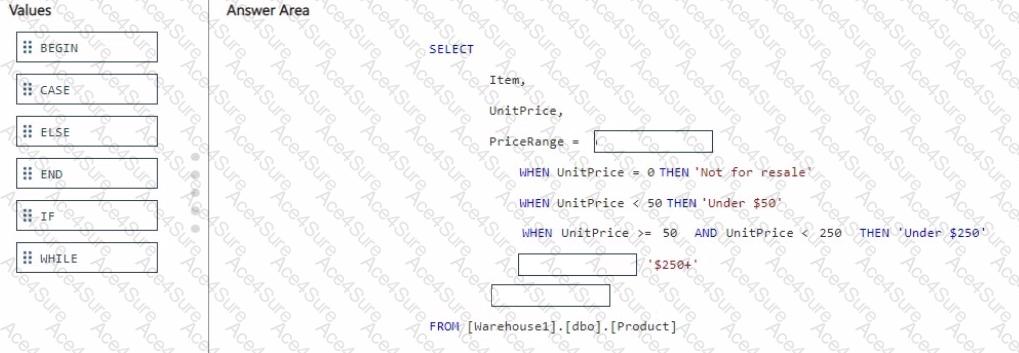 How should you complete the query? To answer, drag the appropriate values to the correct targets. Each value may be used once, more than once, or not at all. You may need to drag the split bar between panes or scroll to view content.
