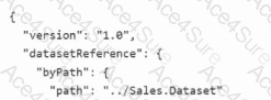In this case, the JSON uses byPath, which references a local dataset file (Sales.Dataset) in the project folder, not a service dataset.