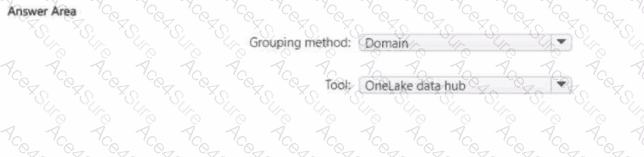 The requirement is to logically group the Research division workspaces and support filtering in the OneLake data hub.