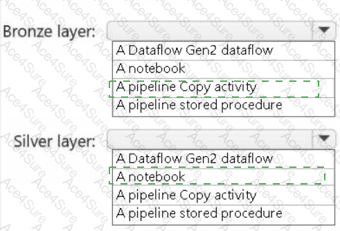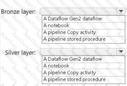 You need to recommend a method to populate the POS1 data to the lakehouse medallion layers.