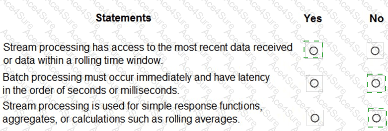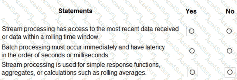 For each of the following stateme nts, select Yes if the statement is true. Otherwise, select No.