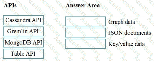 Match the Azure Cosmos DB APIs to the appropriate data structures.