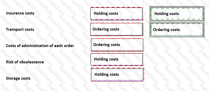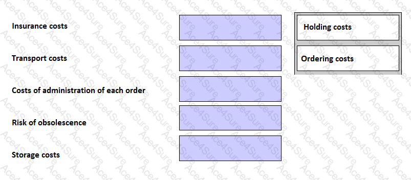 In a manufacturing company, it is important to maintain the correct levels of inventory, with particular attention to holding and ordering costs. For each of the types of costs listed below, identify whether these are holding costs or ordering costs: