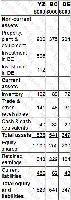 Statements of financial position for YZ, BC and DE at 31 March 20X2 include the following balances: