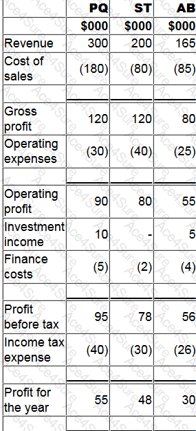 The statement of profit or loss for PQ, ST and AB for the year ended 31 December 20X0 are shown below: