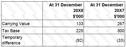 On 1 January 20X7 GH purchased plant and equipment at a cost of $400,000. The temporary differences in respect of this plant and equipment at 31 December 20X7 and 20X8 have been calculated as follows: