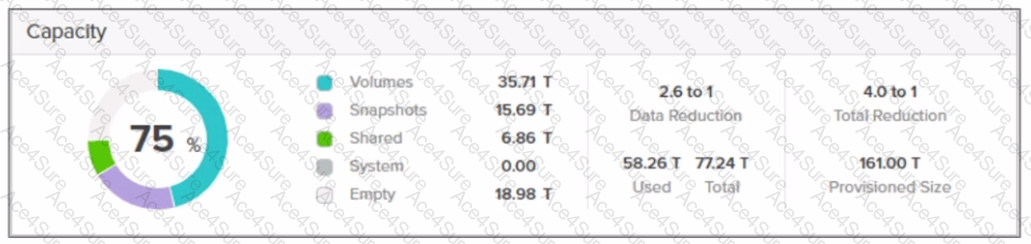 D. Total deduplicated space: Pure Storage combines dedupe, compression, and pattern removal into a single "data reduction" metric. Deduplication alone is not isolated in capacity reporting.