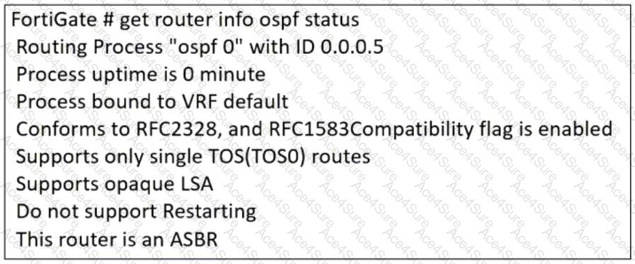 An administrator is checking the OSPF status of a FortiGate device and receives the output shown in the exhibit.