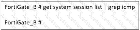 While testing the cluster using the ping command, the administrator monitors packet loss and found that the session output on FortiGate_B is as shown in the exhibit.