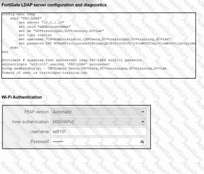 diagnose test authserver ldap FAC-LDAP wifi101 password